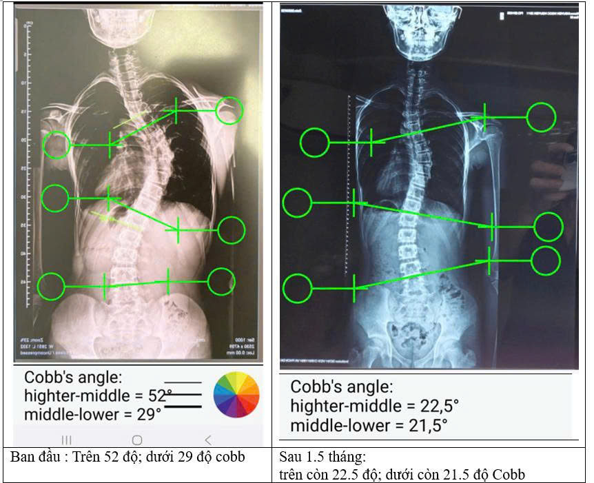 - Trên 52 độ cobb giảm xuống còn 22.5 độ cobb ( giảm hơn 50%)