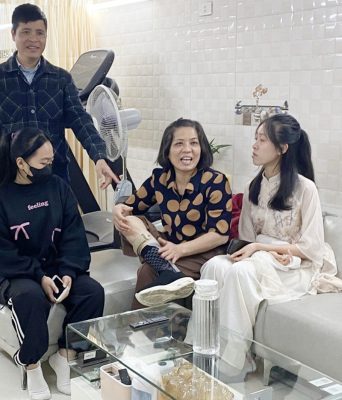 Chị Lê Thị Loan- giáo viên, 45T đến từ Bắc giang, chị cũng là một trong những ca gắn bó đi nẹp AFO từ ngày bị bệnh đến giờ cũng gần 4 năm rồi.